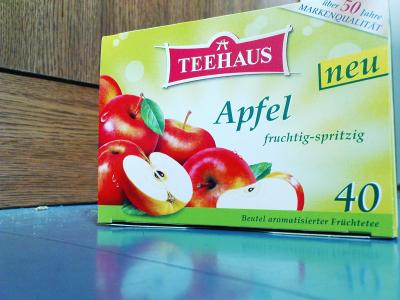 Gestern beim einkaufen ist mir doch tatsächlich ein mir unbekannter Tee ins Auge gestochen! :'D Und zwar der "Apfeltee" von "Teehaus".